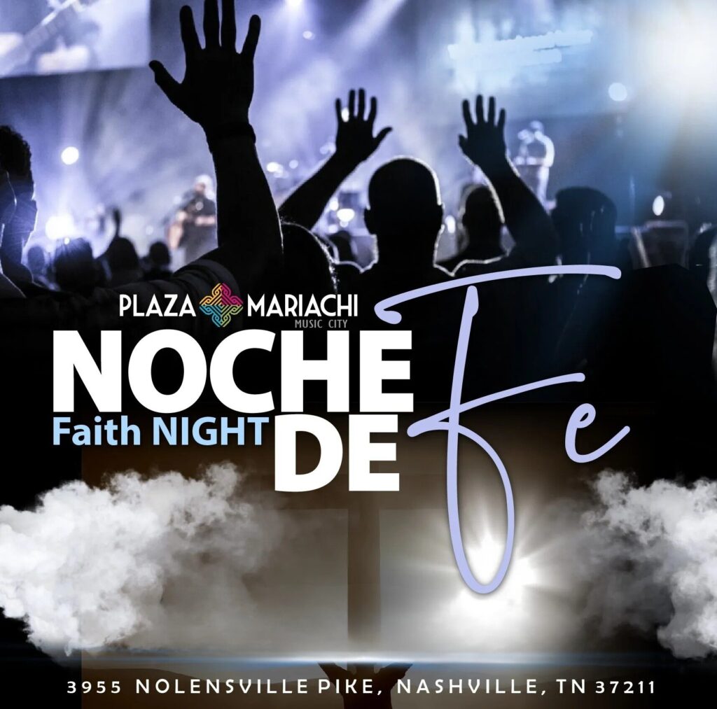 Join us for Faith Night, or Noche de Fe – A bilingual service this Tuesday at Plaza Mariachi! Join us for worship, a word, and ministry time. This event is free and for all ages and denominations!
