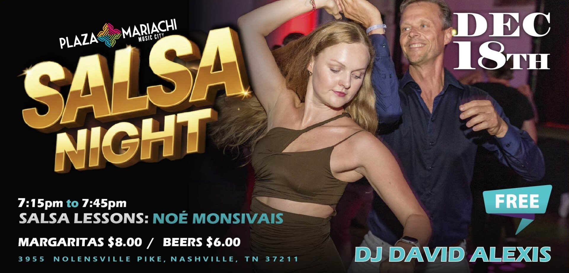 Get ready to move your hips and feel the rhythm at Salsa Night! 🕺 FREE Salsa Lessons start at 7:15 PM with Noé Monsivais — the perfect way to learn new moves before the open dance floor begins.