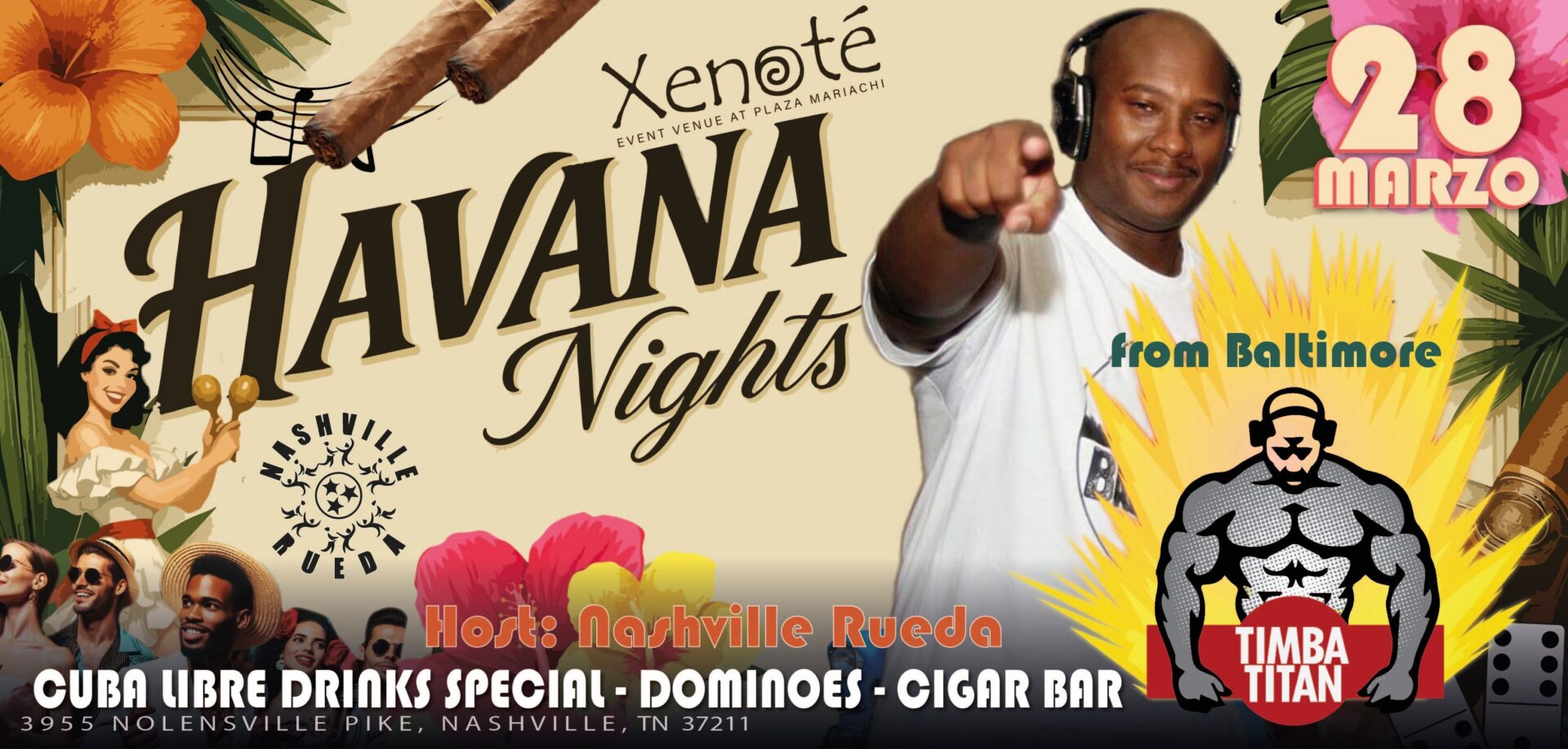 Enjoy an immersive night filled with music, social energy, and cultural flair as we bring Havana-style nightlife to Nashville.