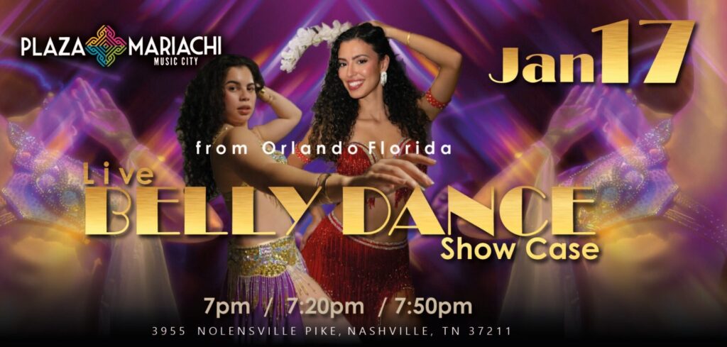 Experience an evening of rhythm, movement, and artistry as Plaza Mariachi presents a Live Belly Dance Showcase, featuring captivating performances by talented dancers visiting from Orlando, Florida.