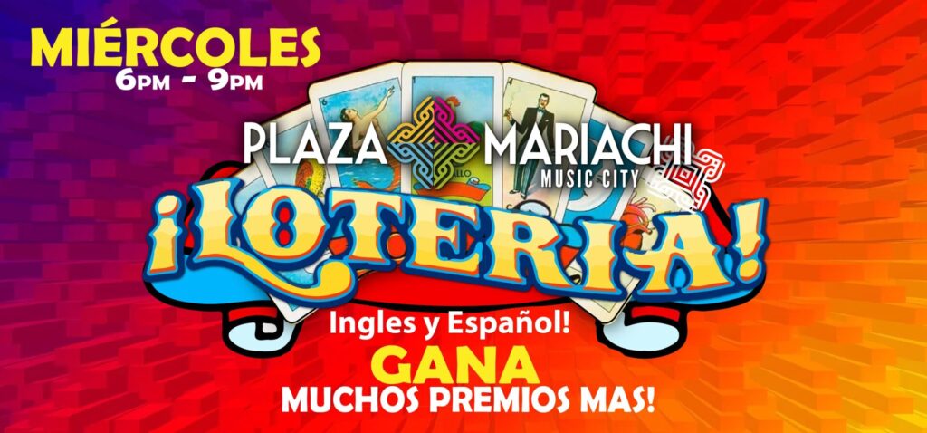 ¡Hola amigos! We are thrilled to invite you to our weekly “Miercoles de Lotería” at Plaza Mariachi! Join us this Wednesday evening from 6 pm to 9 pm for a fun-filled night of Lotería, the traditional Mexican game that has been capturing hearts for generations. This event is FREE to play and offers you the chance to win fantastic prizes!