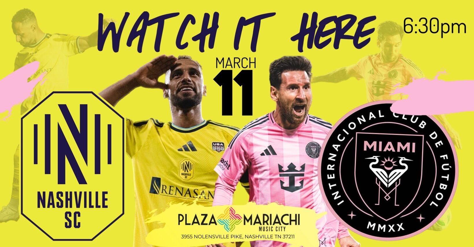 Big screens, great food, cold drinks, and one of the best soccer atmospheres in Nashville. Bring your crew and watch Nashville take on Inter Miami live at Plaza Mariachi. ⚽🔥