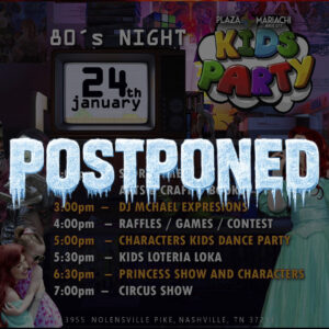 ❄️ Due to the winter weather in Nashville, all events scheduled for Saturday, Jan 24 have been postponed. 🎉 80’s NIGHT KIDS PARTY AT PLAZA MARIACHI 🎉📺 Saturday, January 24 […]